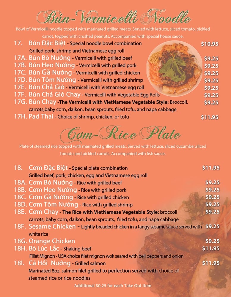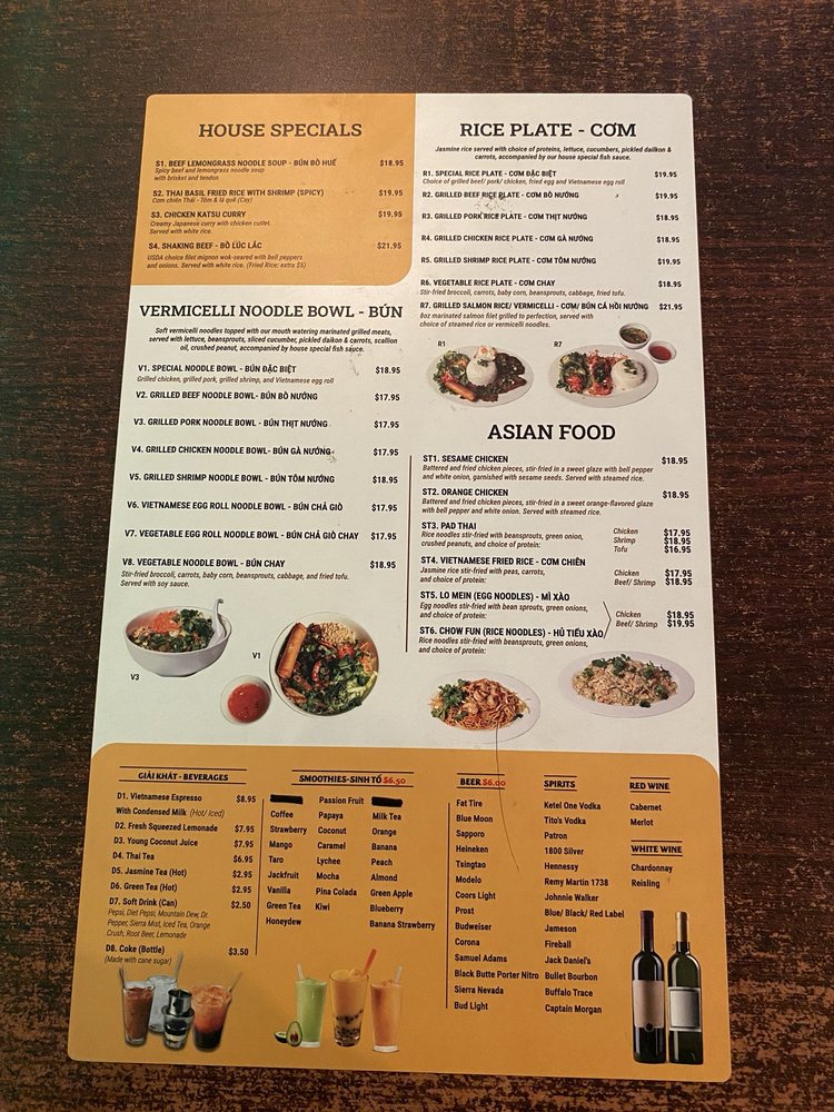- Vermicelli Bowls: The special noodle bowl combines grilled chicken, pork, shrimp, and a Vietnamese egg roll, serving a harmonious blend of tastes for $21.19.